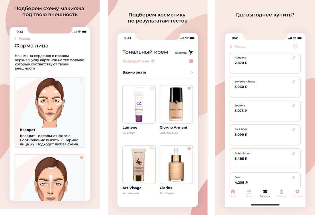 Внутри: интеграция с ЮKassa и Integromat, возможность выбора цветотипа, формы лица и глаз, поиск по инструментам для макияжа, советы по покупке и автоплатежи.
